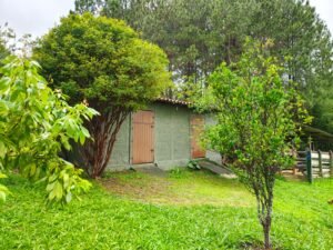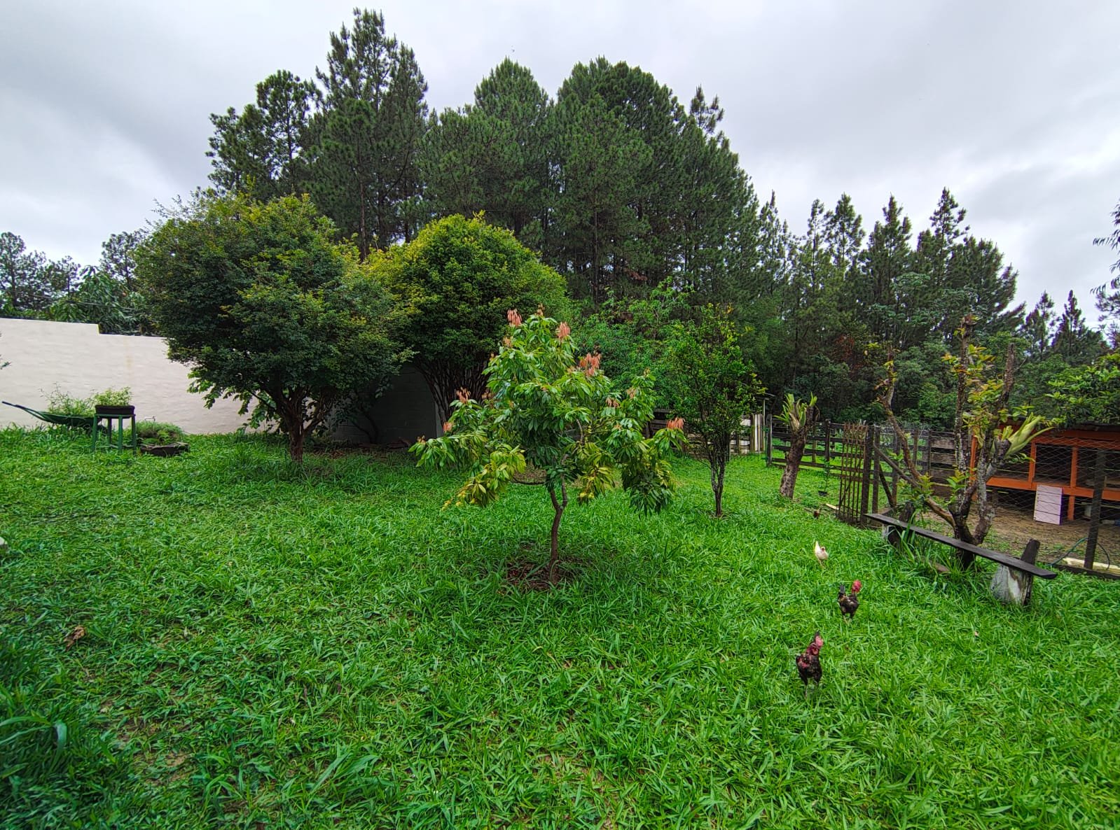 Para quem gosta de plantar e colher, a área externa é um destaque à parte: pomar formado com jabuticaba, acerola, goiaba, lichia e outras variedades, além de horta e amplo espaço para expansão. Há ainda galinheiro organizado, área cercada para animais, depósito, cocheira e árvores nativas que reforçam o clima natural e preservado da propriedade.